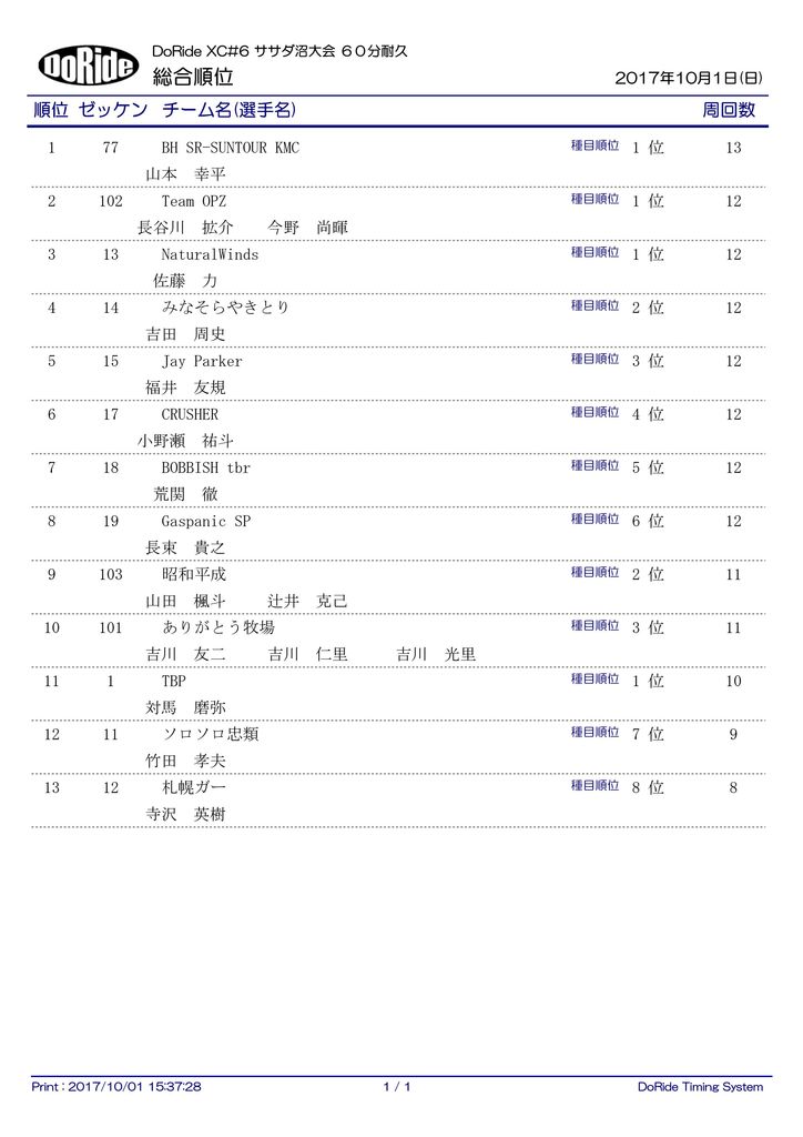 【60分耐久】XC#6 ササダ沼大会リザルト