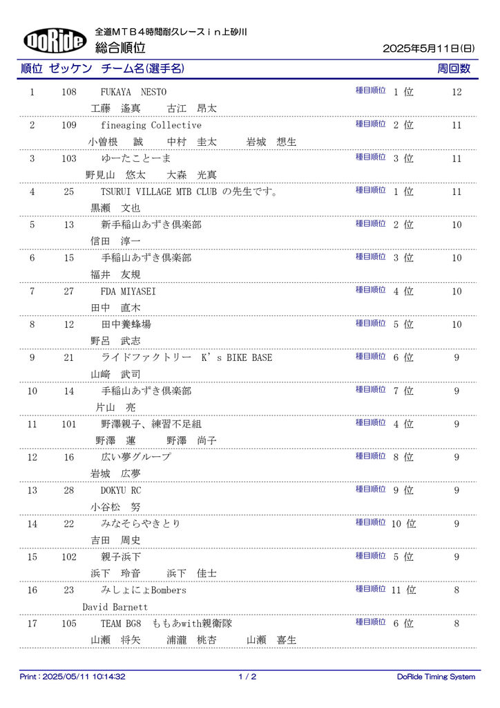 DoRideリザルト