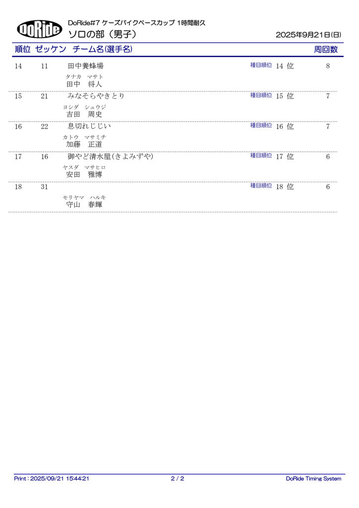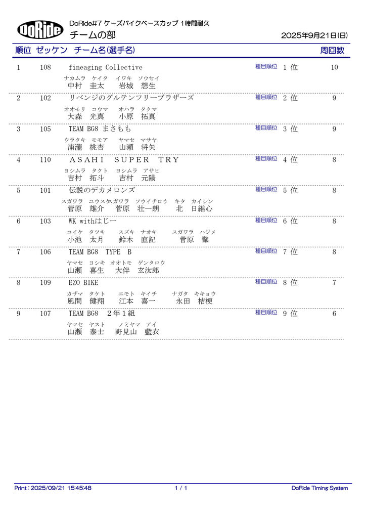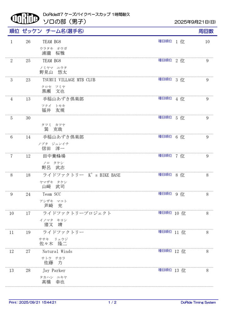 【1時間耐久】ケーズバイクベースカップ 2025年09月21日 ※PDFはこちらからダウンロードしてください。 (要解凍・配布用プログラム、カテゴリー別順位全部入り)https://doride-result.blog.jp/250921_KBBC_result.zip 「耐久レース」カテゴリの最新記事 < 前の記事次の記事 >