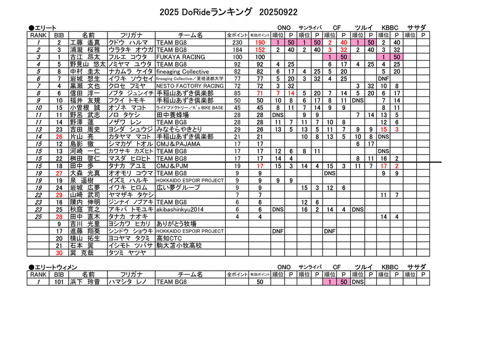 2025 DoRideポイントラインキング 0922 2025年09月23日 ケーズバイクベースカップ終了時点でのポイントランキングです。PDFはこちらからダンロードしてください。https://doride-result.blog.jp/ranking250922.pdf 「ポイントランキング」カテゴリの最新記事 < 前の記事次の記事 >